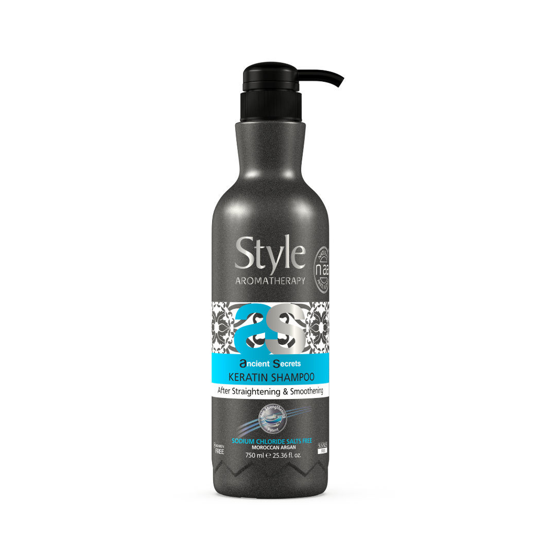 Style Aromatherapy's Keratin Series Treatment Shampoo, free from sodium chloride, parabens, and SLS/SLES, prolongs the effects of keratin and smoothening treatments. The Keravis™ formula, with pure vegetable protein and patented technology, repairs and nourishes hair, preventing brittleness. Infused with Moroccan Argan Oil and Borage Seed Oil, it enhances hair health and ensures long-lasting smoothness.